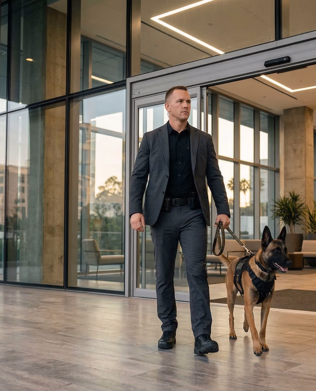 Pentagon's K9 services are most effective when they are integrated into the broader security architecture of an engagement. For event security clients, K9 detection is coordinated with venue advance work, access control, and principal close protection as components of a single program. For corporate security clients, K9 capability is integrated into the organizational security posture rather than deployed independently.