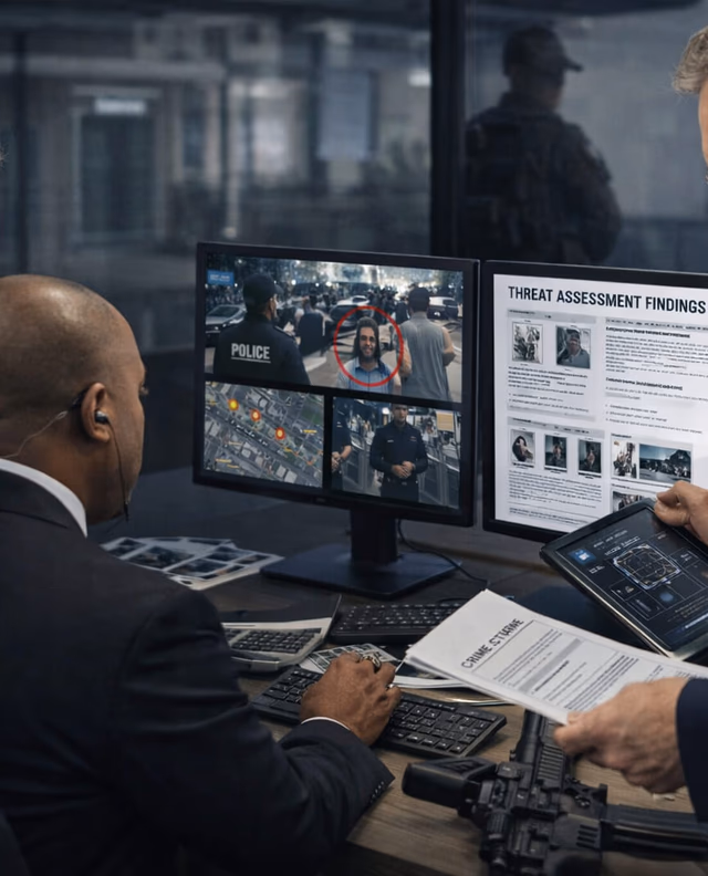 Prevention is the highest form of protection. Unlike reactive security approaches, our threat assessment process begins with deep intelligence gathering and behavioral pattern recognition, techniques refined through decades of federal-level experience. The act of conducting a structured threat assessment involves a formal investigation and targeted intervention steps, with the clear goal of violence prevention and the safety of all involved.